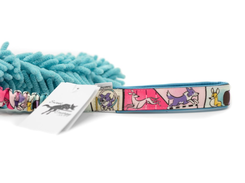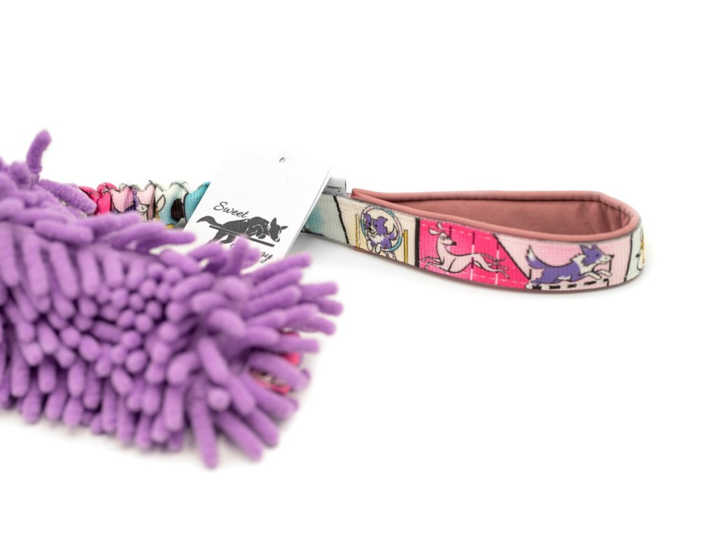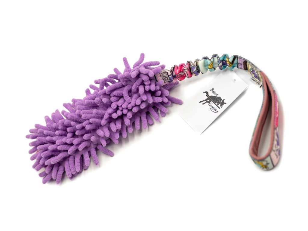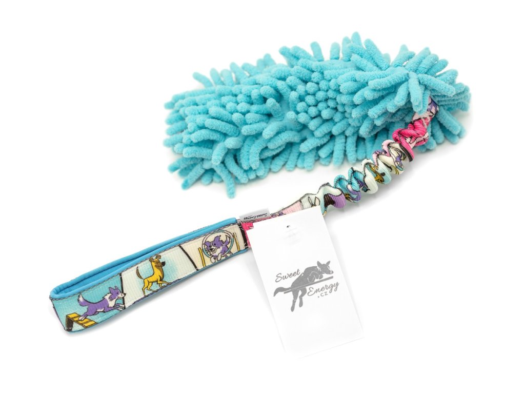 Celková délka hračky je 50 cm, část s mopem z mikrovlákna je 18 cm, šířka popruhu je 25 mm