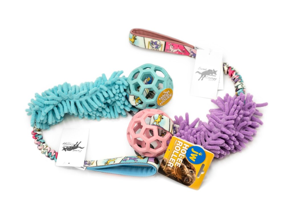 Hračka s mopem z mikrovlákna s amortizérem a děrovaným balónkem JW Pet Hol-ee velikosti SMALL (průměr 8 cm) nebo XSMALL